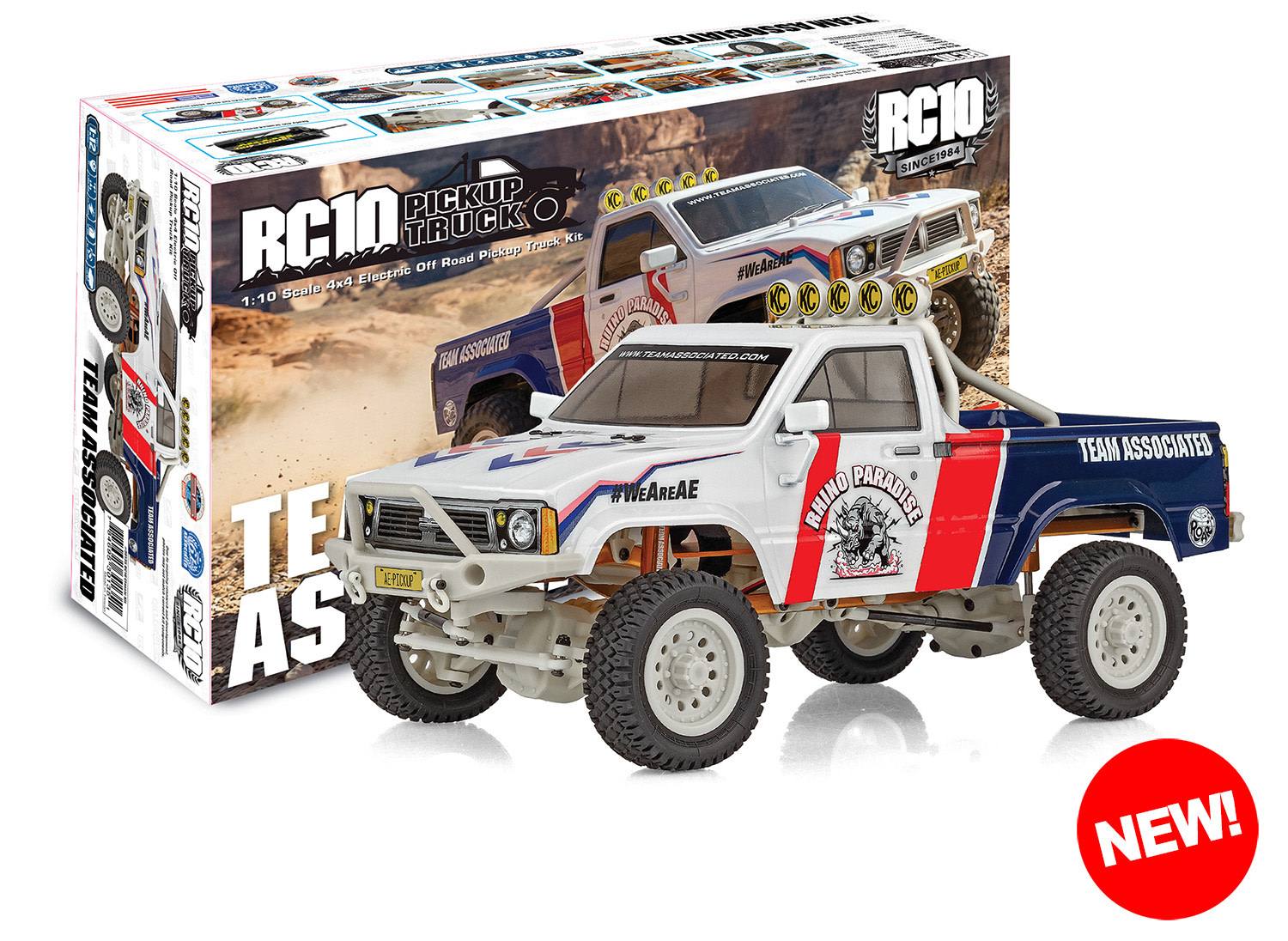 The RC10 4x4 Pickup Truck may be small in size, but is packed full of features. This rig is designed not only for scale looks with realistic wheels, tires and body, this truck is built for performance as well. The steel ladder frame chassis provides the perfect backbone for this rugged little rig. The 4-link suspension, scale shocks, and soft rubber tires give the grip and performance needed to climb over the roughest terrain. Transferring power to the rocks is a compact 3-gear transmission, plastic low-friction slider-type drive shafts, front steel CVA axles, and metal shield ball bearings. Get ready to hit the trails with the scale RC10 4x4 Pickup Truck!