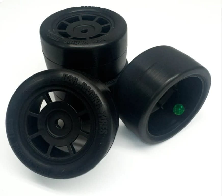 BSR is proud to offer the first (and possibly only) belted tire for the 1/12 Losi NASCAR platform. Each tire is belted to prevent the tire from ballooning at speed. It is also the perfect spec tire platform for tracks who wish to eliminate the game of wearing the tires down so they balloon on the straight and increase rollout. This will stop that. Comes as a set of 4 in our popular Touring Car Compounds. Note: The belt allows for these cars to run with more power, but not unlimited power. They will not hold up to 4s modified. 2s is about the max you may want to go. Carpet tires are formulated for carpet and will wear out quickly on asphalt. You may also see tiny hairs from the belt in the sidewall. While it would be ideal that they aren't there, they have no effect on the functionality or durability of the tire.