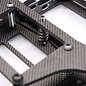 Super easy battery height and droop adjustment. From the top, with a simple hex head, the center preload is adjusted to alter the amount the car "sags in" when race ready. From the bottom of chassis, a simple twist of a wrench on the limit set screw adjusts the "extension" or down travel of the car. Super easy to see and adjust.