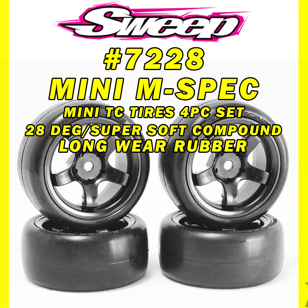 SWP7228513P Sweep Minis 28deg M-SPEC Rubber Tires (4) set on Black pre-glued Wheels