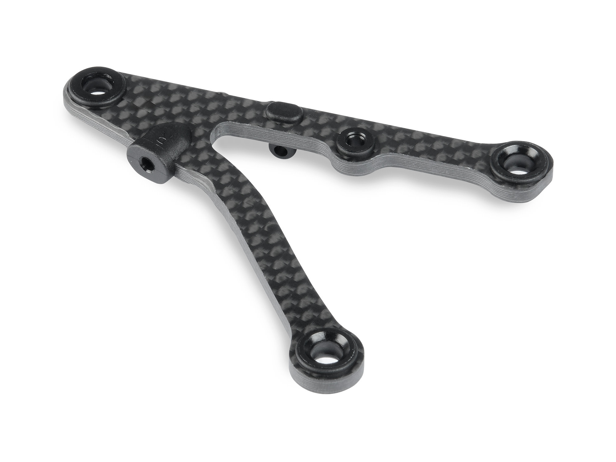 | Standard length, medium hardness front lower arm for the right side of the car. CFF2™ carbon fiber lower arms with composite plastic detailing for maximum suspension rigidity and optimal suspension function. The arms are extremely light yet durable. The improved suspension geometry with shocks more outboard provides improved traction and steering in all conditions. A unique design solution is applied for the pivot balls for easy assembly, but at the same time - maximum reliability. |
