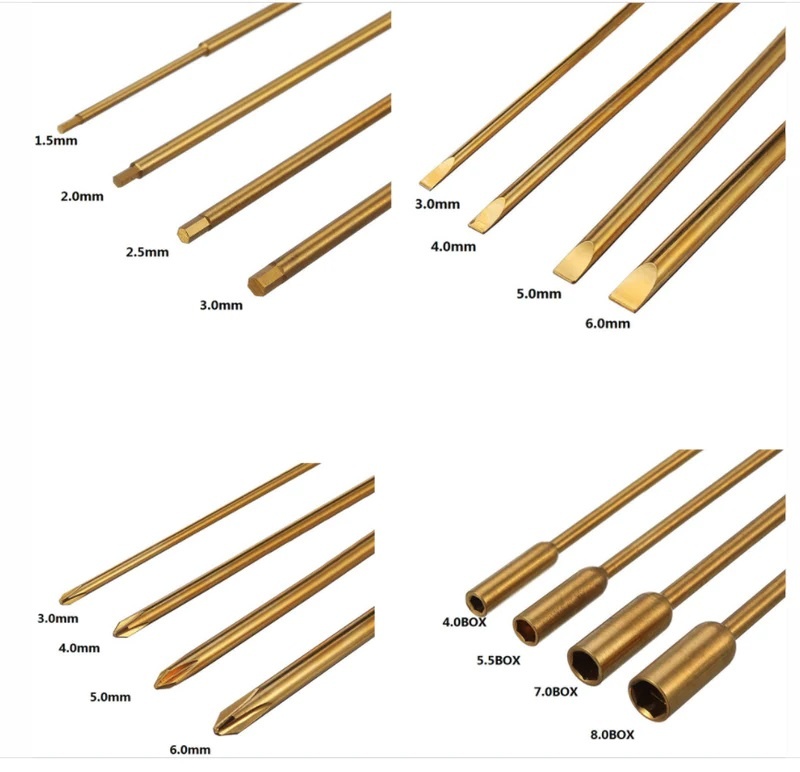Package Included: 1X 4.0mm Nut Driver for M2 nut 1X 5.5mm Nut Driver for M3 nut 1X 7.0mm Nut Driver for M4 nut 1X 8.0mm Nut Driver for M5 nut 1X 3.0mm Flat Head Screw driver 1X 4.0mm Flat Head Screw driver 1X 5.0mm Flat Head Screw driver 1X 6.0mm Flat Head Screw driver 1X 3.0mm Cross Screw driver 1X 4.0mm Cross Screw driver 1X 5.0mm Cross Screw driver 1X 6.0mm Cross Screw driver 1X 1.5mm Hex Screwdriver 1X 2.0mm Hex Screwdriver 1X 2.5mm Hex Screwdriver 1X 3.0mm Hex Screwdriver