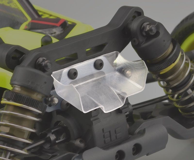 The F2 is dramatically lower in height than its competition and provides that “race” look and stance that is driver approved in competition. Special consideration was made for the steering, servo horn and front geometry to allow the body to have that drop-on fit. The EB410 kit includes a side-mount fan option which has also been taken into consideration with the F2 body design. The body includes a louver design built into the body which runs alongside the fan and scribe lines where the user can add holes for direct air circulation.