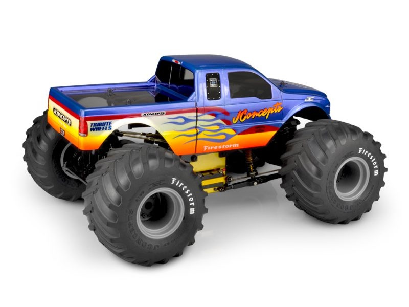 Starting at the core, JConcepts started with a popular wheelbase in the MT community and designed it around the popular race trucks on the circuit. The monster trucks have gigantic tires and the 2005 Ford F-250 takes this into consideration with large openings positioned like the monsters from this generation. The design of the flares and wheel wells allow versatility in a segment that has a wide range of set-ups chassis designs and most importantly, wheelbase.