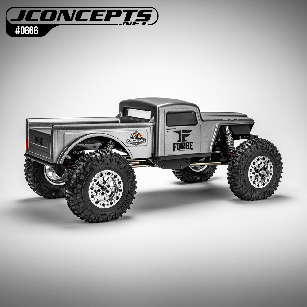 A thrilling follow-up to the popular Anvil, The Forge is the freshest release from JConcepts for 12.3” wheelbase crawler trucks. Simply put, the new body shell has an added rear bed which arrives attached to the main cab. The mock sheet metal type bed design is a powerful figure out on the trails and once connected to the most popular cab in the JConcepts line-up, The Anvil, the connected unit drops on a competition inspired truck with the meanest look in the woods.