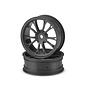 The matte black and stealth look give the wheels serious street appearance and look ultra-low under any race car. The Tactic wheels match perfectly with JConcepts Hotties tires (#3193 front) and (#3194 rear) for the Street Eliminator look.