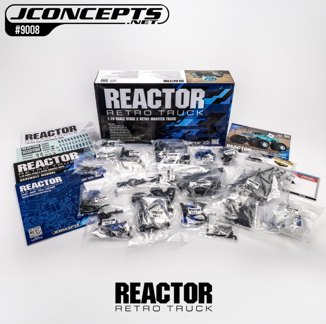 The REACTOR, a true competition-inspired 1:10th retro monster truck kit, offers enthusiasts a versatile platform to create iconic pieces from the past or present. Designed with engineering materials and detailed design elements, the REACTOR is built for competition, straight-line car crushing, U-turn courses, Chicago-style racing, and figure 8 track configurations.