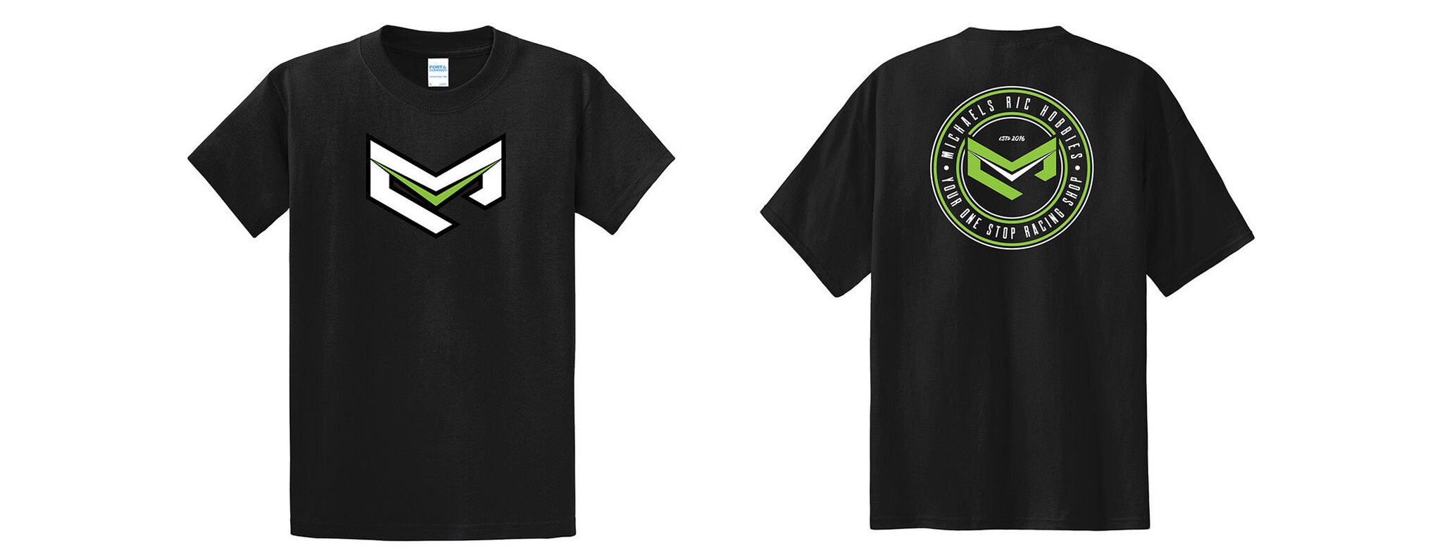 Michael's RC Hobbies "M" Logo on the front and Circle "Your One Stop Racing Shop" Logo on the back.