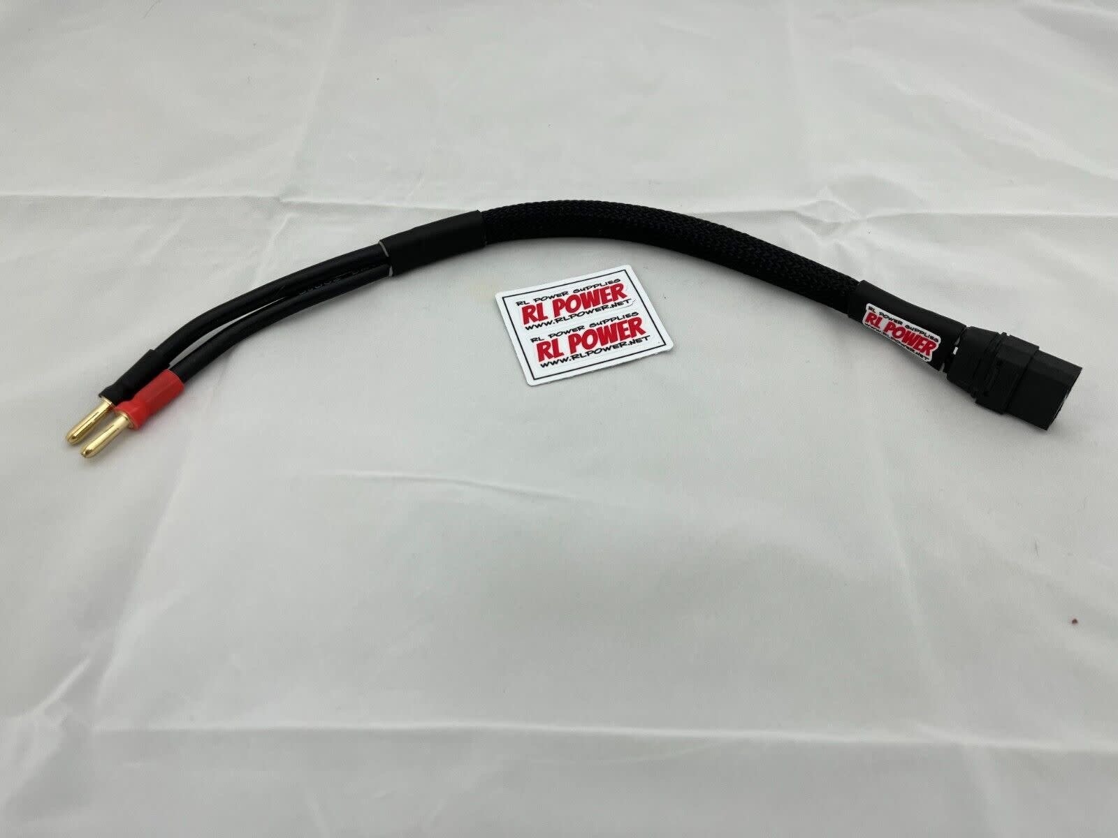 The RL Power Power Cable has a female XT90 on the charger end along with male 4mm bullets on the other end to connect to your power supply.