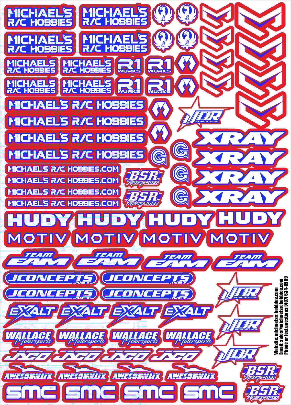 MRC8511SRBW MRC Sponsor 8.5x11 Sticker Sheet - Red Blue White