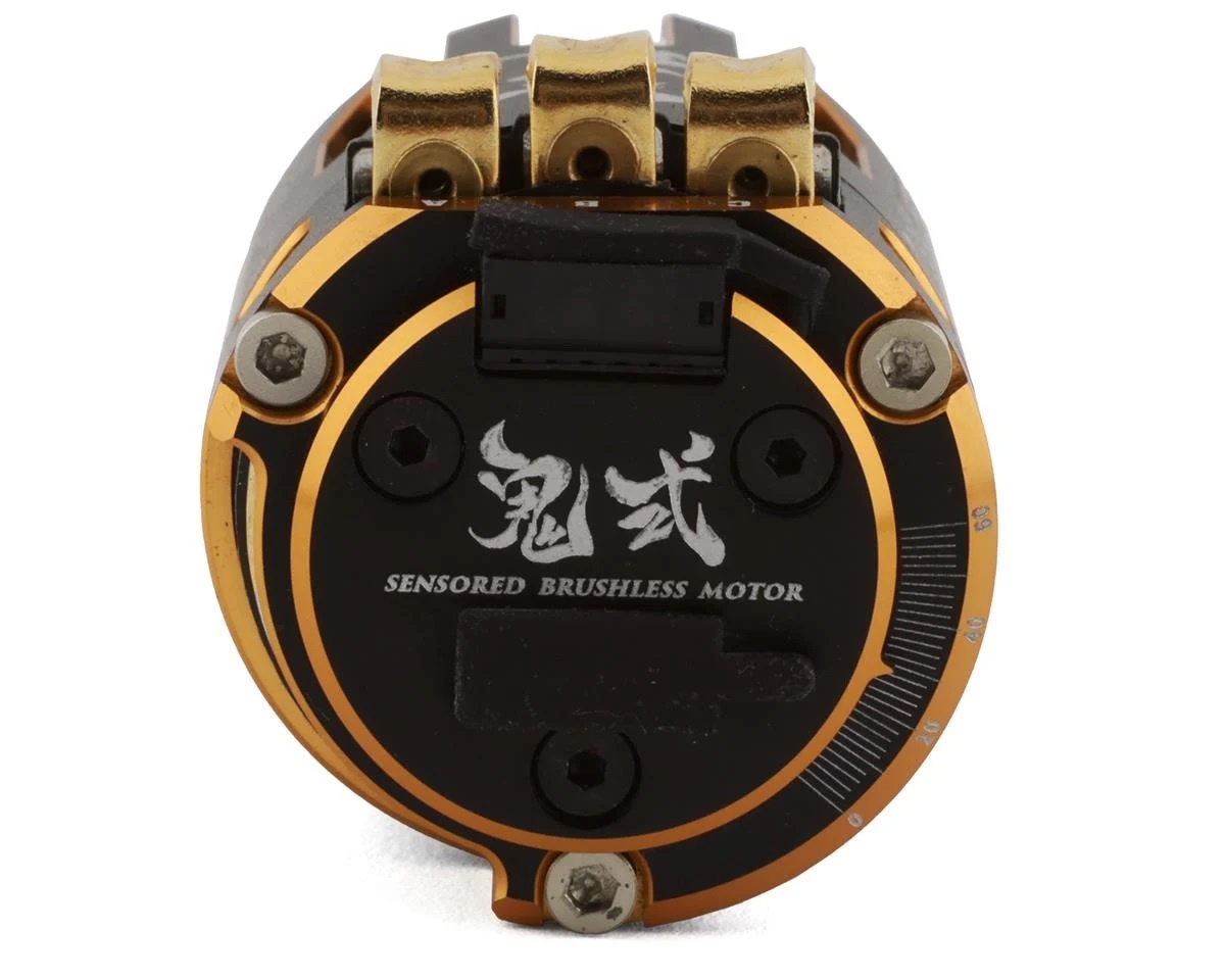The Onisiki SHURA 13.5T 2850KV Dual Sensor Port 540 Brushless Sensored Motor brings style and performance to your drift car. With years of proven performance Onisiki motors are taylor made for drifting giving optimum feel and power. The Shura features an updated 12mm rotor for smooth throttle control that can be felt into the higher RPM range. Added to the sensor board is an additional sensor port. This gives the user the ability to mount this motor in a wide variety of vehicles without any sensor cable wiring issues. With gold accents this motor not only performs well but has the style to match.