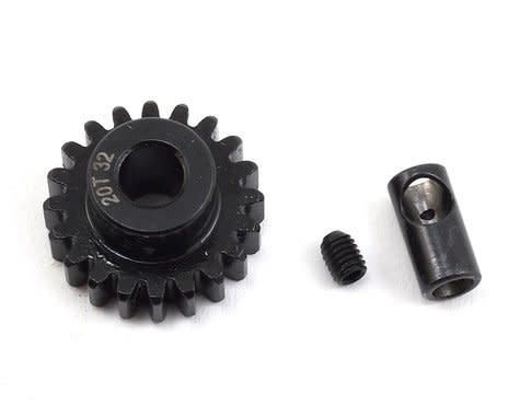 ProTek R/C Steel 32 Pitch Pinion Gears are an affordable pinion gear option that doesn't skimp on quality. CNC machined from hardened steel material, these precision cut gears are durable and are perfect for any 32 pitch application. Available in 11 - 20 tooth variants, these gears feature a 5mm bore with an included reducer sleeve that will allow use with standard 3.17mm size motor shafts. The tooth count and tooth pitch is engraved on the gear for easy identification, and each gear includes a setscrew to make installation easy.