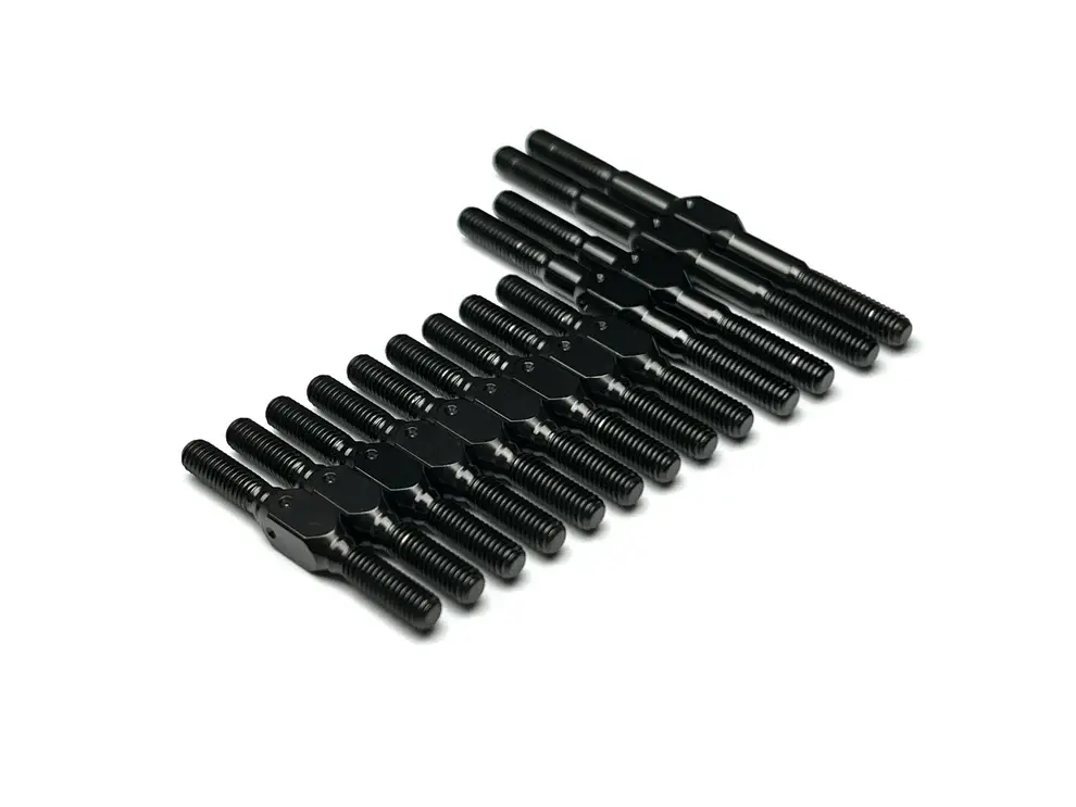 Machined from lightweight Grade 5 (6Al-4V) titanium, each turnbuckle features precision M3 threads for smooth adjustments and long-lasting performance. Left-hand threads are clearly marked with a machined dimple, and 4 mm wrench flats make setup changes fast and repeatable.