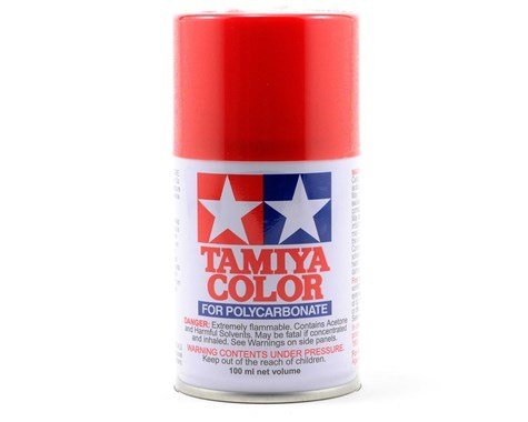 This is a 100ml can of Tamiya PS-2 Red Lexan Spray Paint. These spray paints were developed especially for decorating transparent polycarbonate bodies used in R/C car modeling. Each can contains 100ml of paint, which is the appropriate amount for finishing one 1/10 scale model.