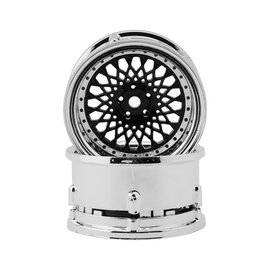 DSC-DE-314 DS Racing Element Mesh Drift Wheels (Black w/Chrome Lip & Black Rivets) (2) (Adjustable Offset) w/12mm Hex