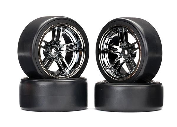 Tires and wheels, assembled, glued (split-spoke black chrome wheels, 1.9' Drift tires) (front and rear)