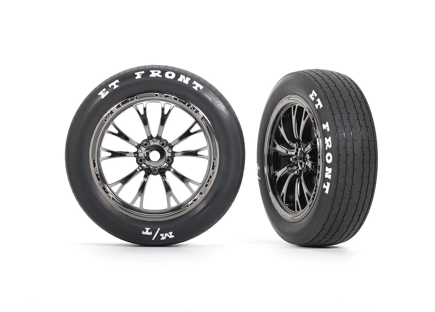 TRA9474X Traxxas Drag Slash Front Pre-Mounted Tires (Black Chrome) (2) w/Weld Wheels & 12mm Hex