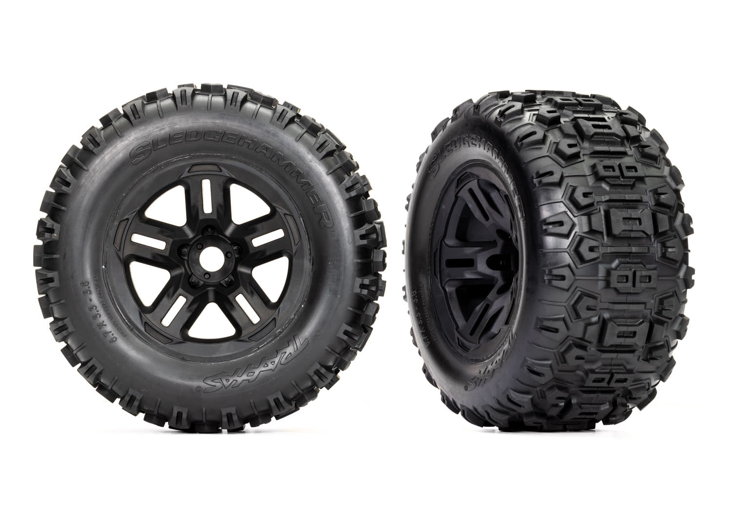 TRA9672 3.8" Black 5-Spoke Wheels & Sledgehammer Tires (2)