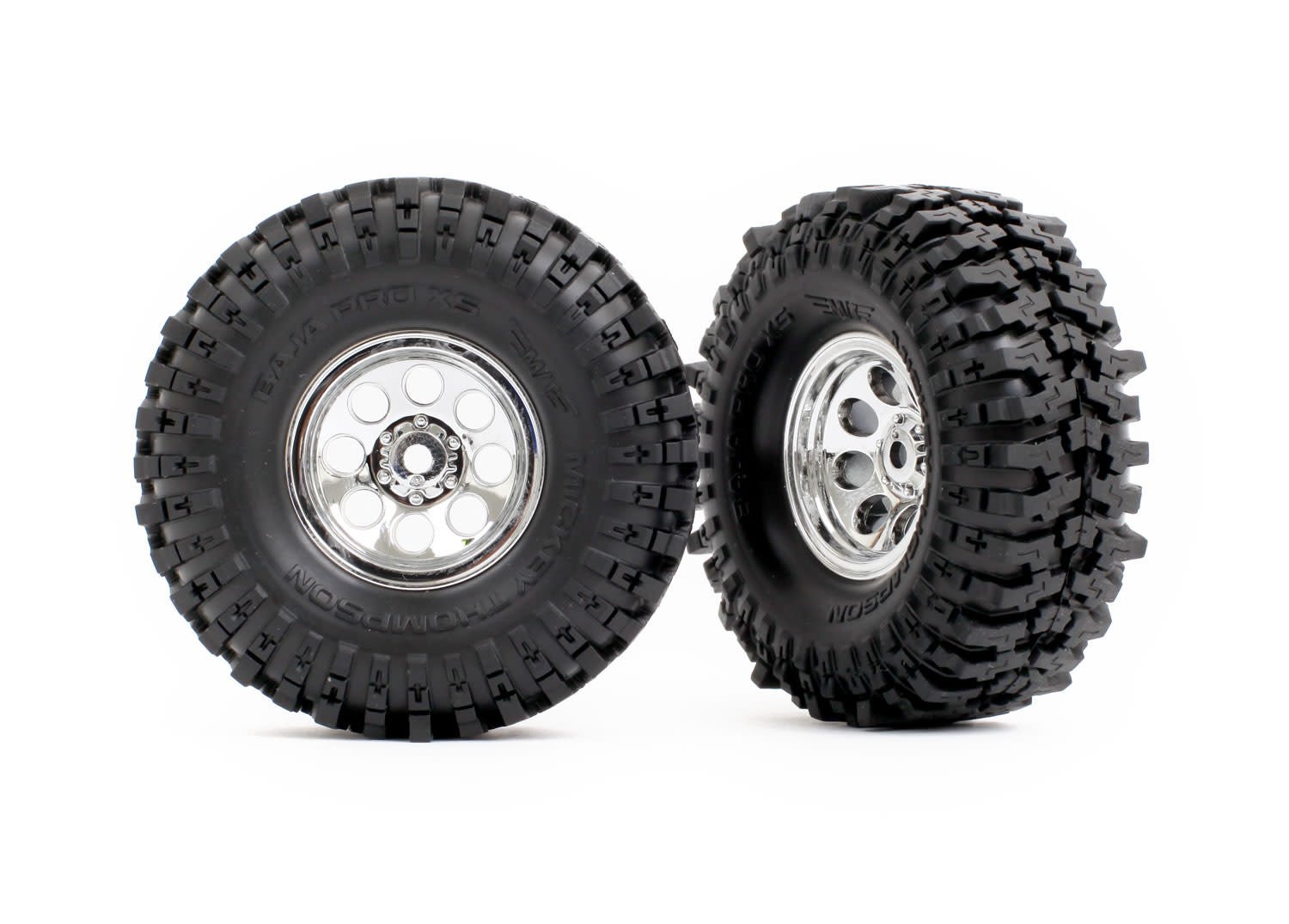 TRA9873 Pre-mounted 1" Chrome Wheels w/ MT Baja Pro Tires (2) TRX-4M