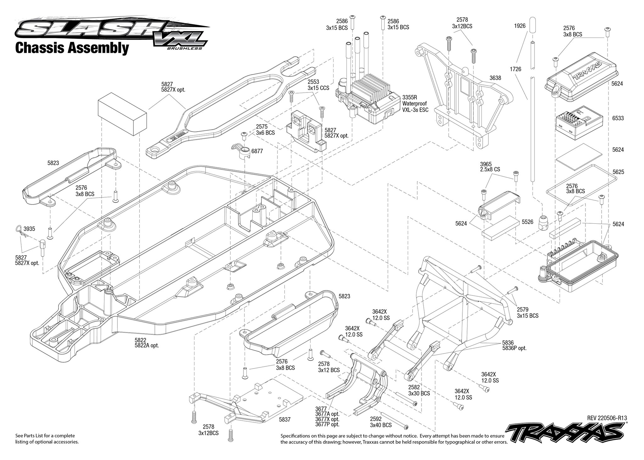 Slash VXL (58076-4) Chassis Assembly Exploded View