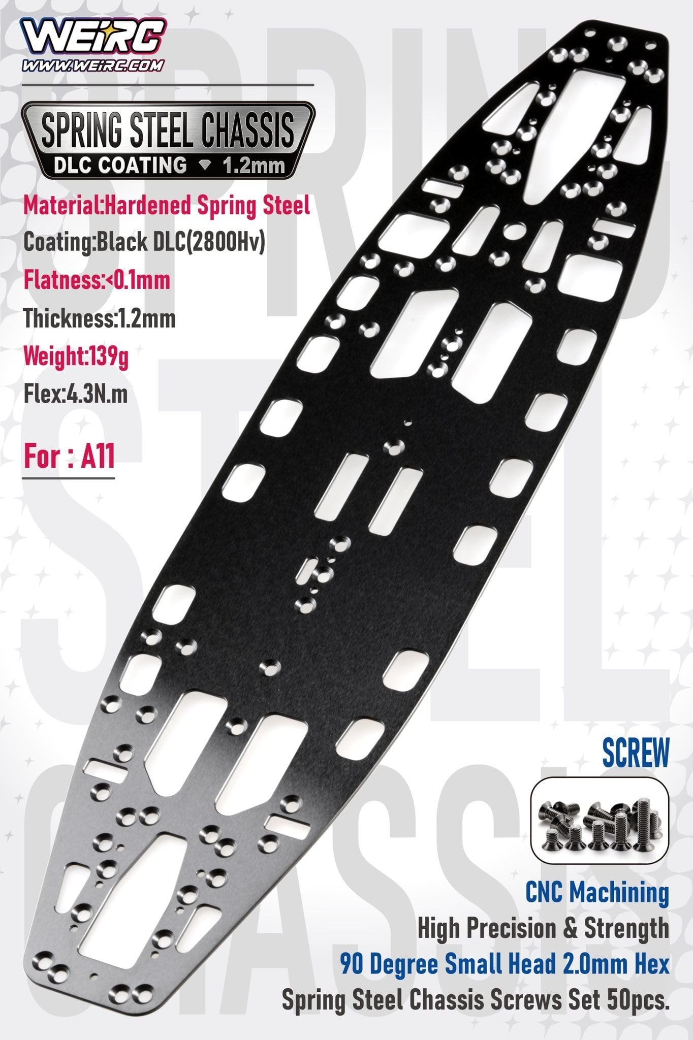 WEI-DLCSCSET-A11 WeiRC 1.2mm Spring Steel Chassis DLC Coating w/ Screws Set for ARC A11 (WeiRC)