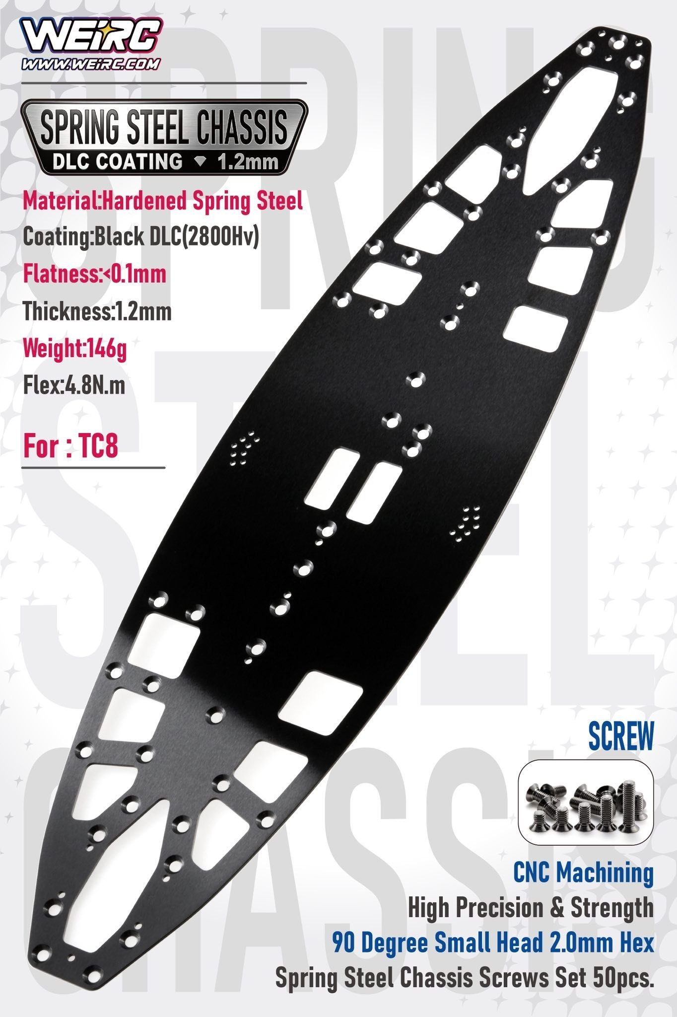 WEI-DLCSCSET-TC8 WeiRC 1.2mm Spring Steel Chassis DLC Coating w/ Screws Set for Associated TC8 (WeiRC)