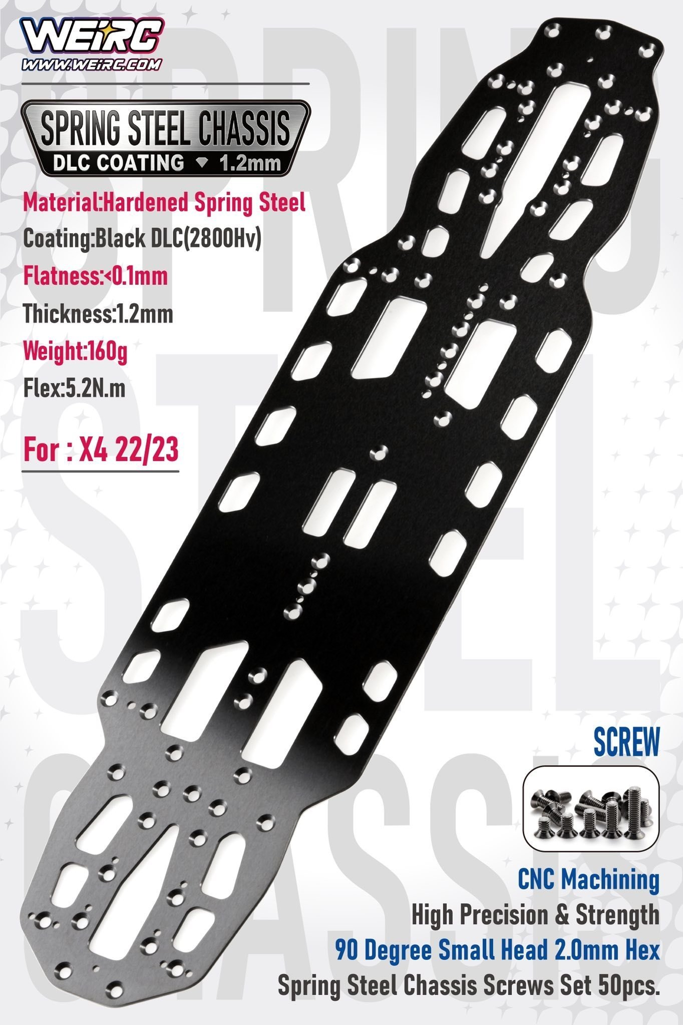 WEI-DLCSCSET-X423 WeiRC 1.2mm Spring Steel Chassis DLC Coating w/ Screws Set for Xray X4 2022 & 2023