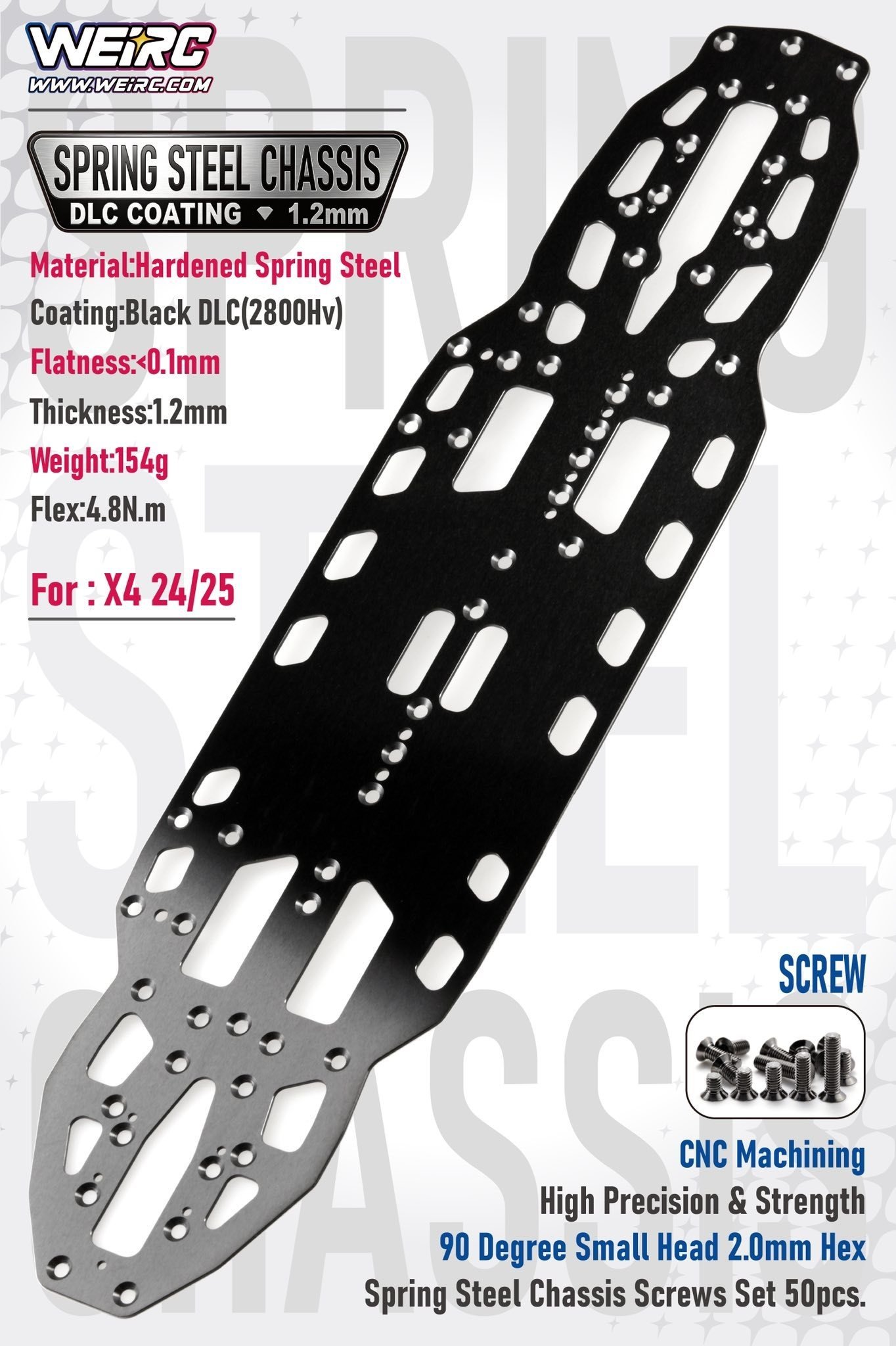 WEI-DLCSCSET-X425 WeiRC 1.2mm Spring Steel Chassis DLC Coating w/ Screws Set for Xray X4 24, 25 (163g) (WeiRC)