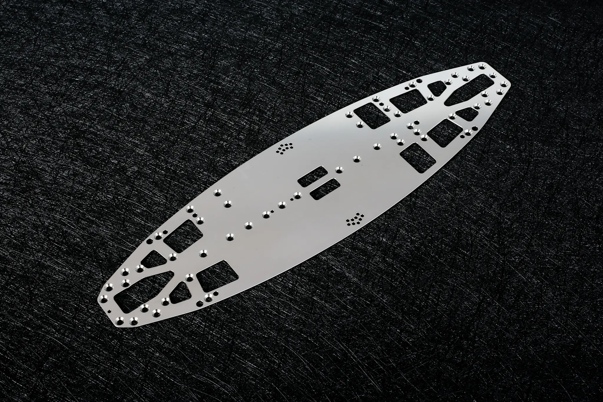 The high-quality steel chassis from WeiRC is THE tuning alternative for your Awesomatix A800RR touring car. The 1.2mm thin chassis is heavier than a carbon fibre or aluminium chassis and lowers the centre of gravity of the vehicle enormously. The advantage of using a steel chassis can often be better handling and an "easier to drive car".