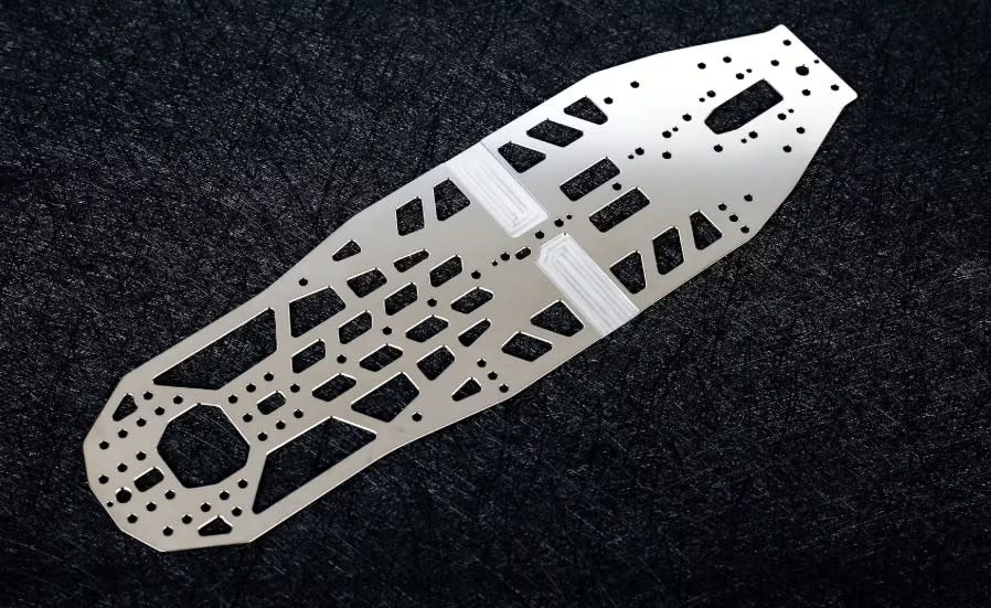 The high-quality steel chassis from WeiRC is THE tuning alternative for your Schumacher FT9. The 1.2 mm thin chassis is heavier than a carbon fibre or aluminium chassis and lowers the centre of gravity of the vehicle enormously. The advantage of using a steel chassis can often be better handling and an "easier to drive car".