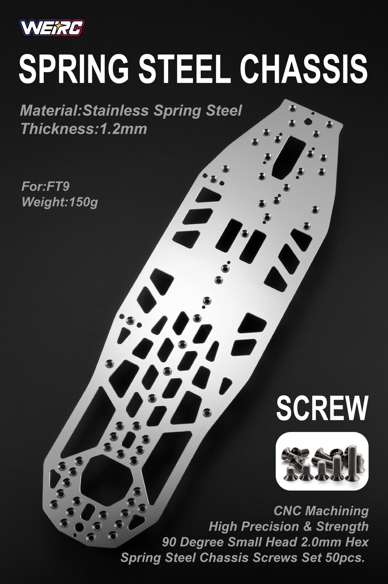 WEI-SCSET-FT9 WeiRC 1.2mm Steel Chassis w/ Screws Set for Schumacher FT9