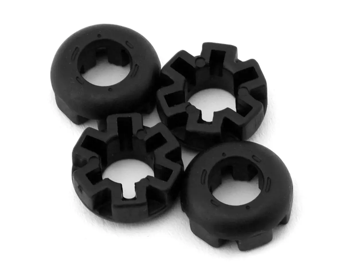 eXcelerate Prodigy Body Post Adjustment Collars. These are a replacement set of body post-adjustment collars intended for the Prodigy 1/12 Electric On-Road Pan Car. Package includes four collars.