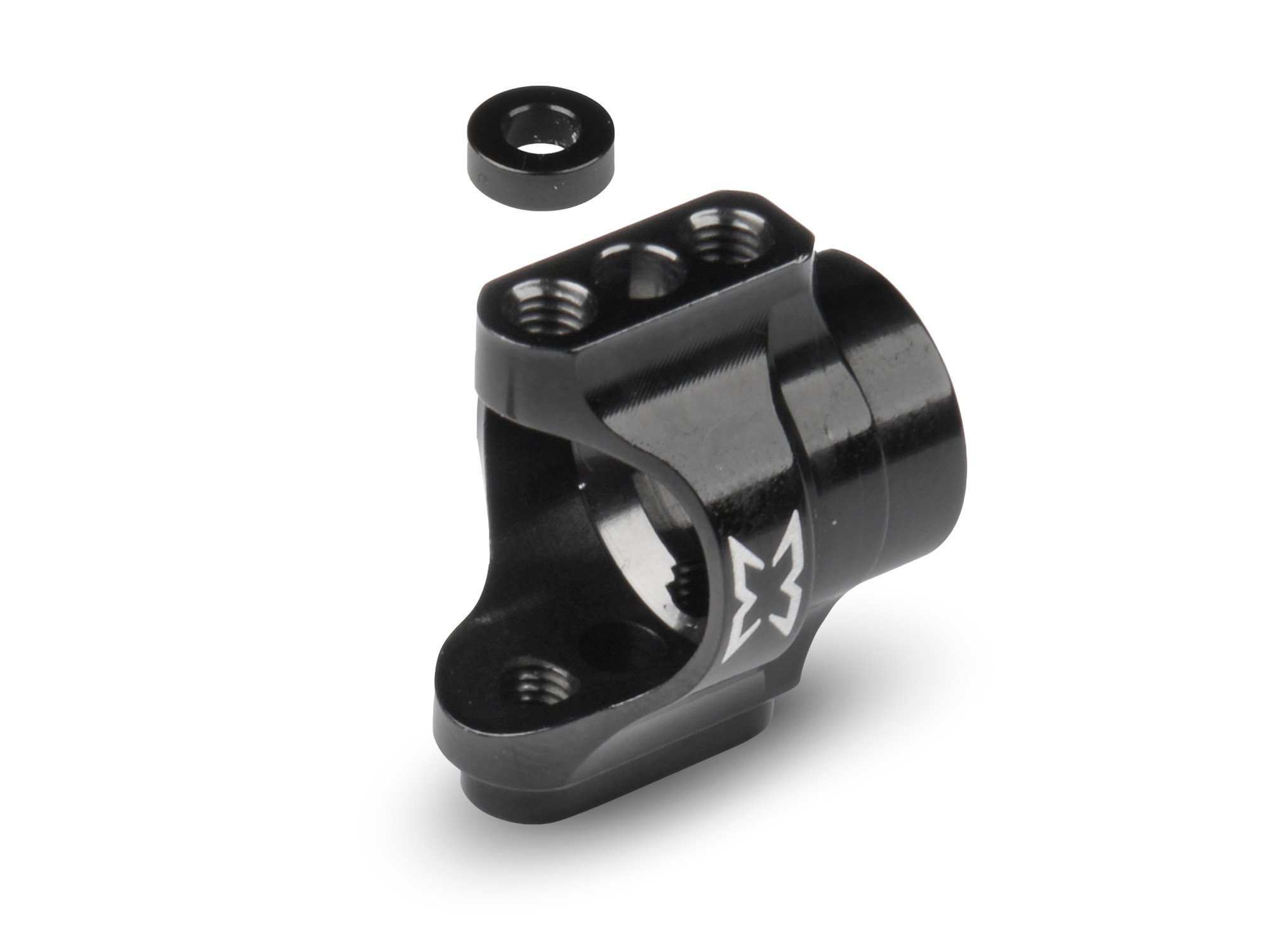 | X4 alu steering block CNC-machined from premium lightweight T6 aluminum. Ultra-strong construction provides very long life and durability in even the most extreme racing conditions. Direct replacement for the standard composite hubs. Using the steering blocks in an aluminium material reduces flex, and improves consistency, and will free up the car, mainly for high grip conditions, and especially in spec racing classes. The hubs allow full adjustability of the axle height to adapt the car to every condition. The carbon front steering plates and rear ARS plates are easily mounted depending on the hub\'s location. The design of the hub is universal with the same part used at all four corners with corresponding extensions. Please note: Because of the lower height compared to kit composite hubs, 2.0mm additional shimming must be used to achieve the same upper arm height above the hub. |